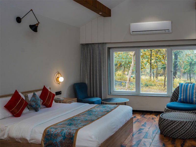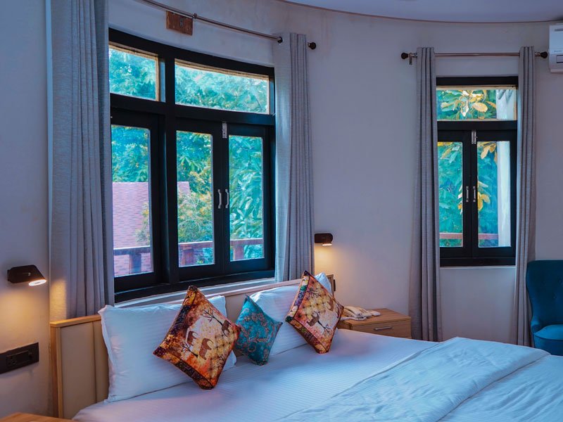 Shahdar Jungle Resort features 9 Luxury Cottages that offer an unparalleled retreat for nature lovers and wildlife enthusiasts. Each luxury cottage is thoughtfully designed with a perfect mix of modern amenities and rustic charm. Spacious interiors feature tasteful wooden furnishings, earthy tones, and large windows that allow ample natural light while offering breathtaking views of the jungle.